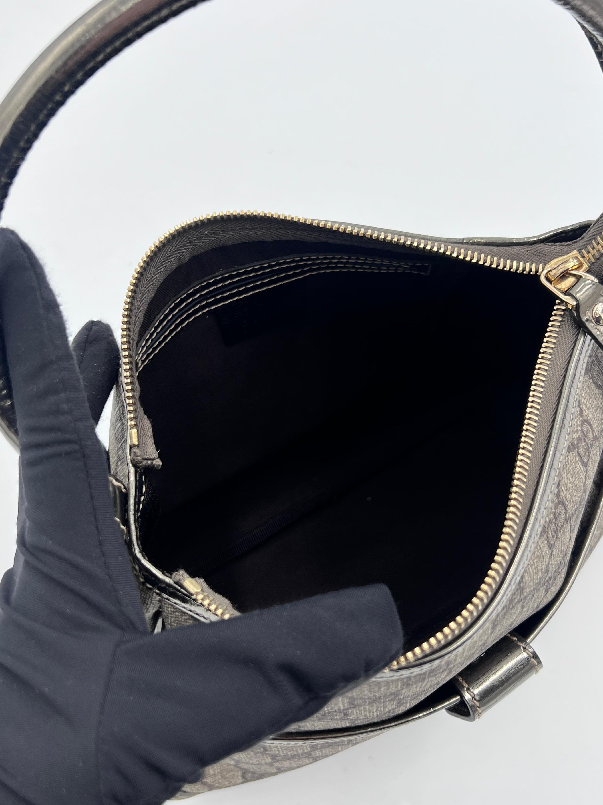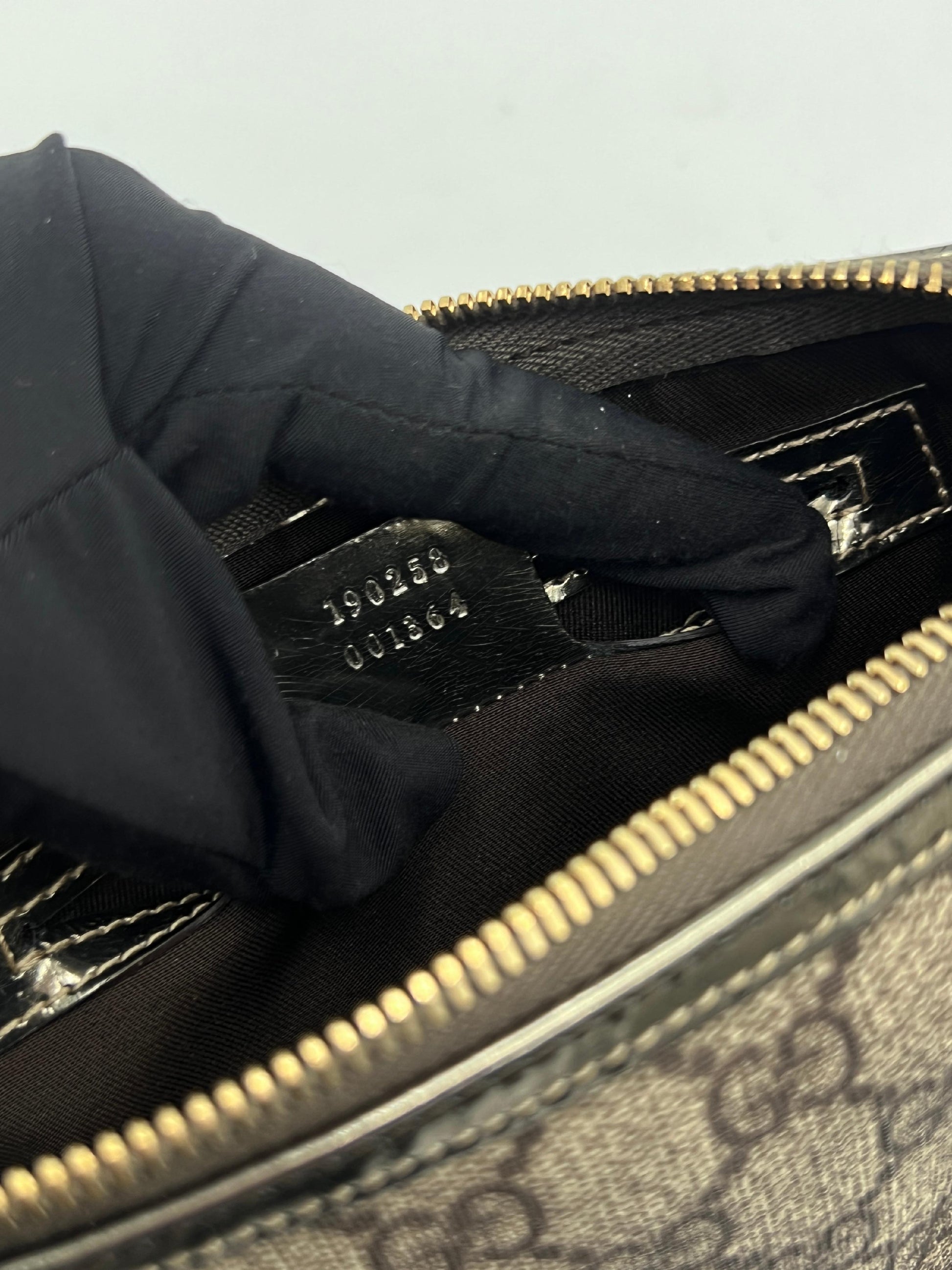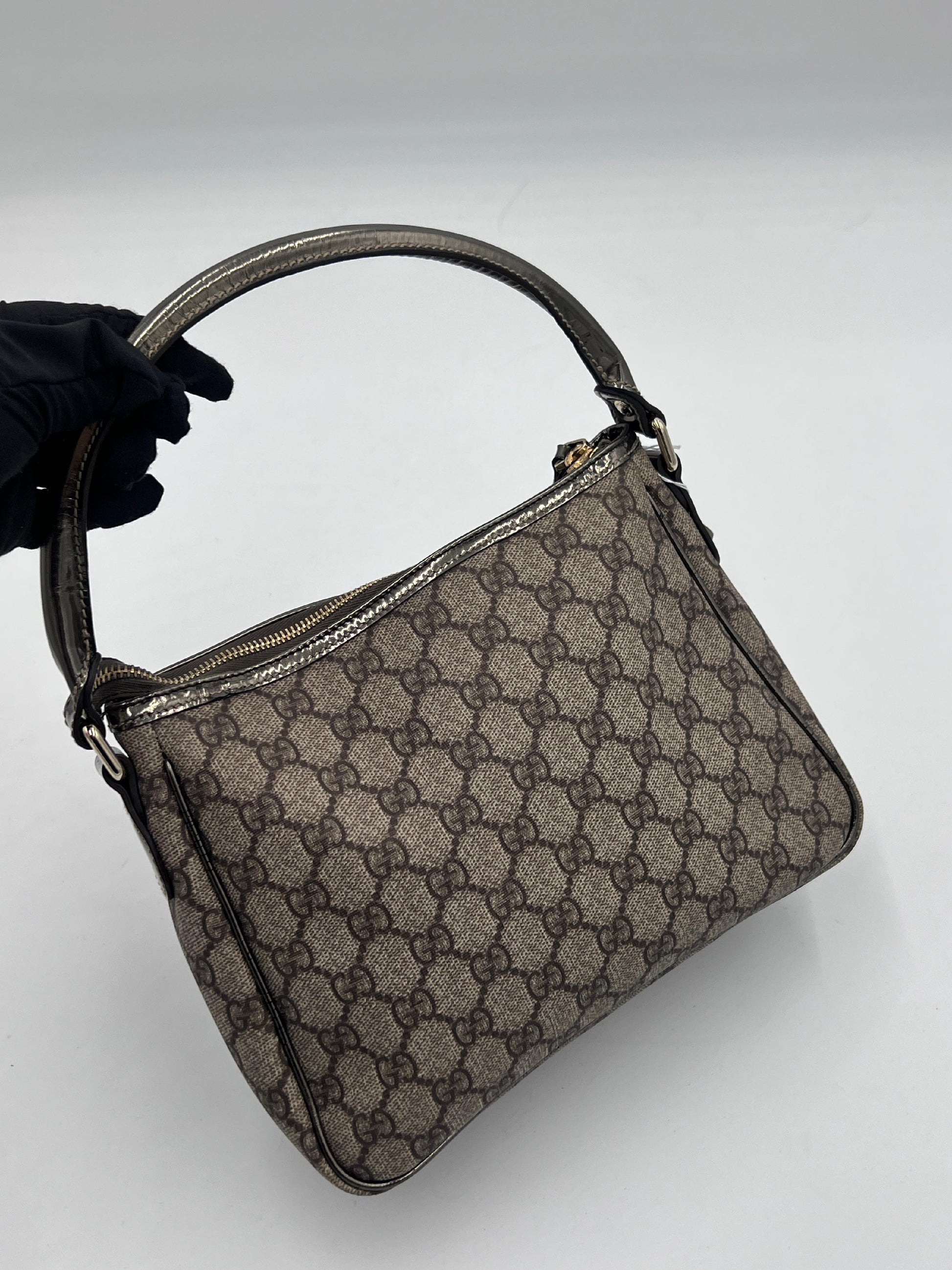 Crafted in Gucci's signature GG Supreme canvas, this one-shoulder bag offers style and practicality. Features leather trim and adjustable strap for easy wear.