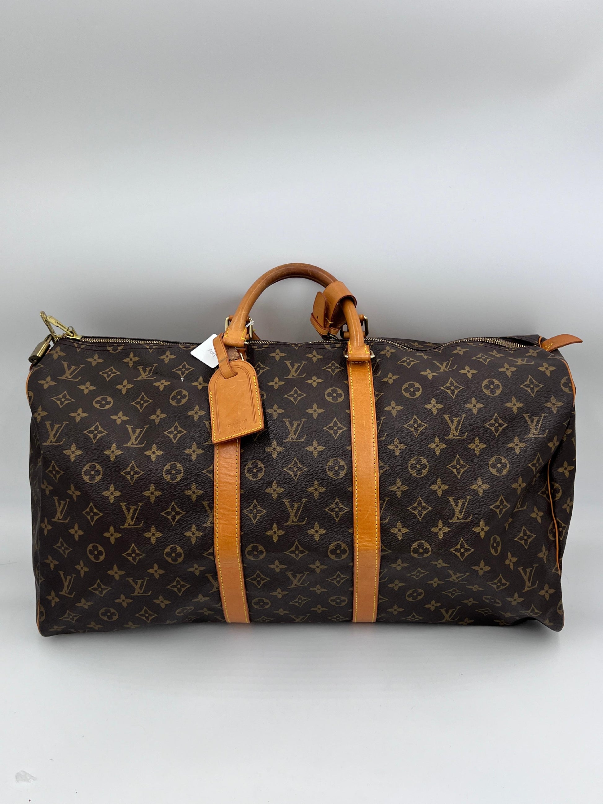 Classic Louis Vuitton Keepall designed for travel. Lightweight, roomy and finished with the brand’s signature styling—perfect as a luxury weekender.