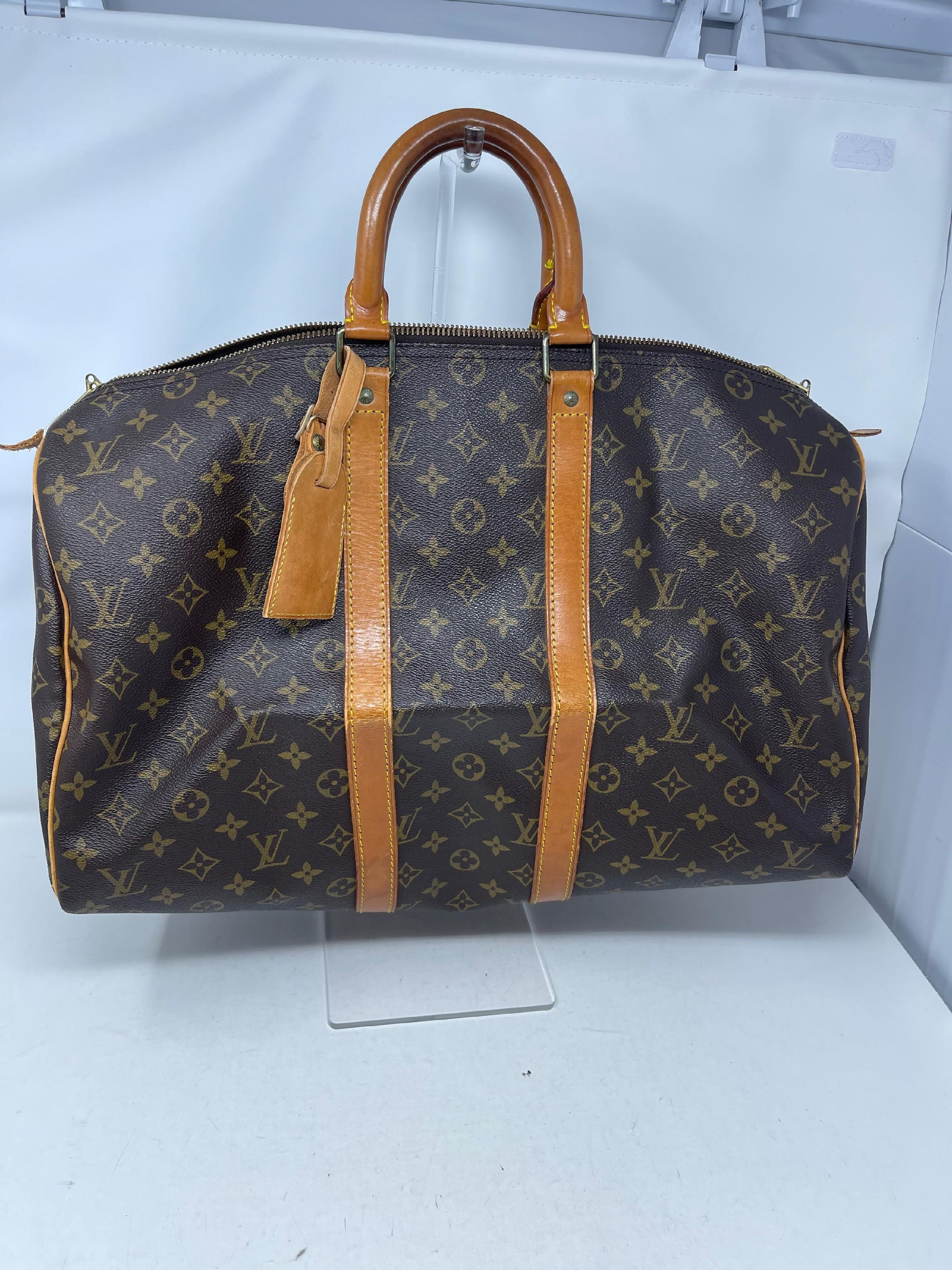 Another variation of the Louis Vuitton Keepall: classic travel duffel style with ample space and signature detailing for weekend getaways.