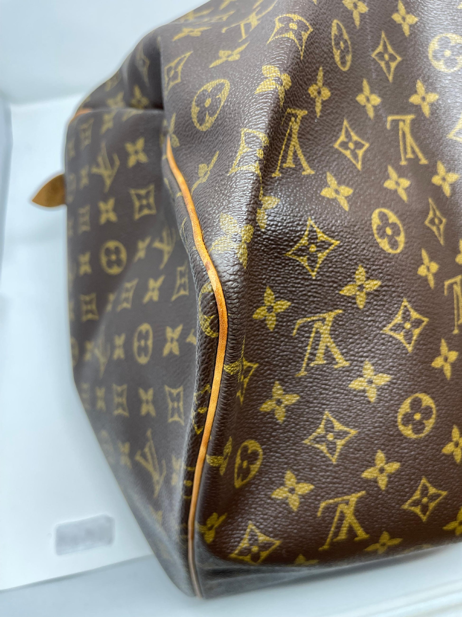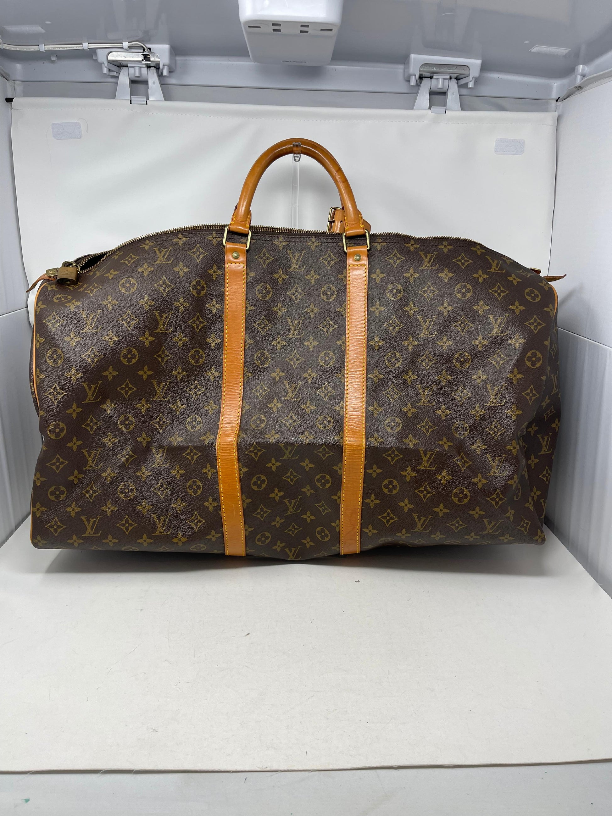 Louis Vuitton's signature travel bag crafted from Monogram or Damier canvas, featuring natural cowhide trim and double zip closure. Lightweight and spacious, the Keepall is the ultimate travel companion for style and functionality.
