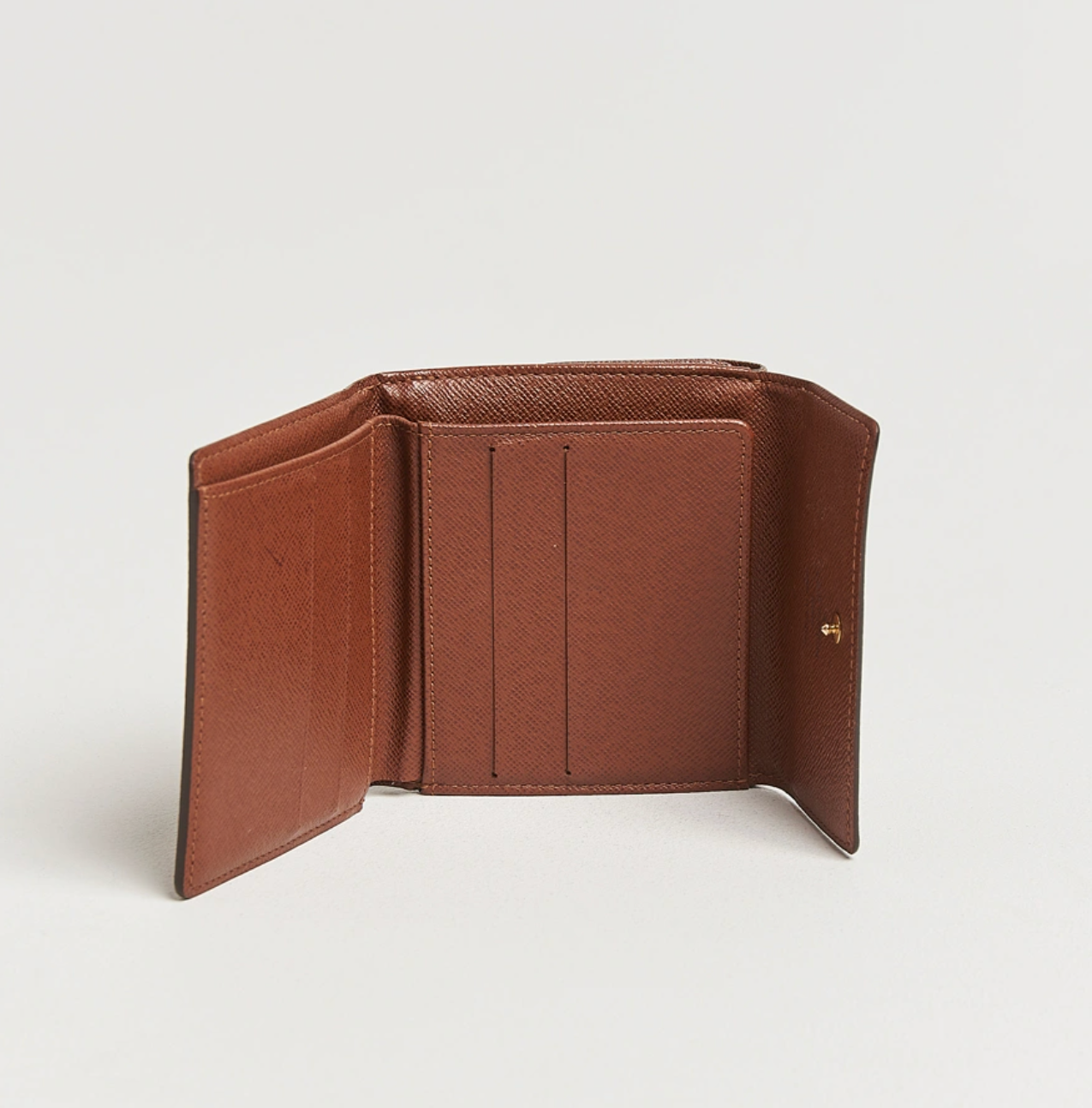 A compact trifold wallet crafted in iconic Monogram canvas, featuring a press-stud closure and organized interior with card slots, coin pocket, and bill compartment. Its sleek design and durable coated canvas make it perfect for daily use while maintaining timeless Louis Vuitton elegance.