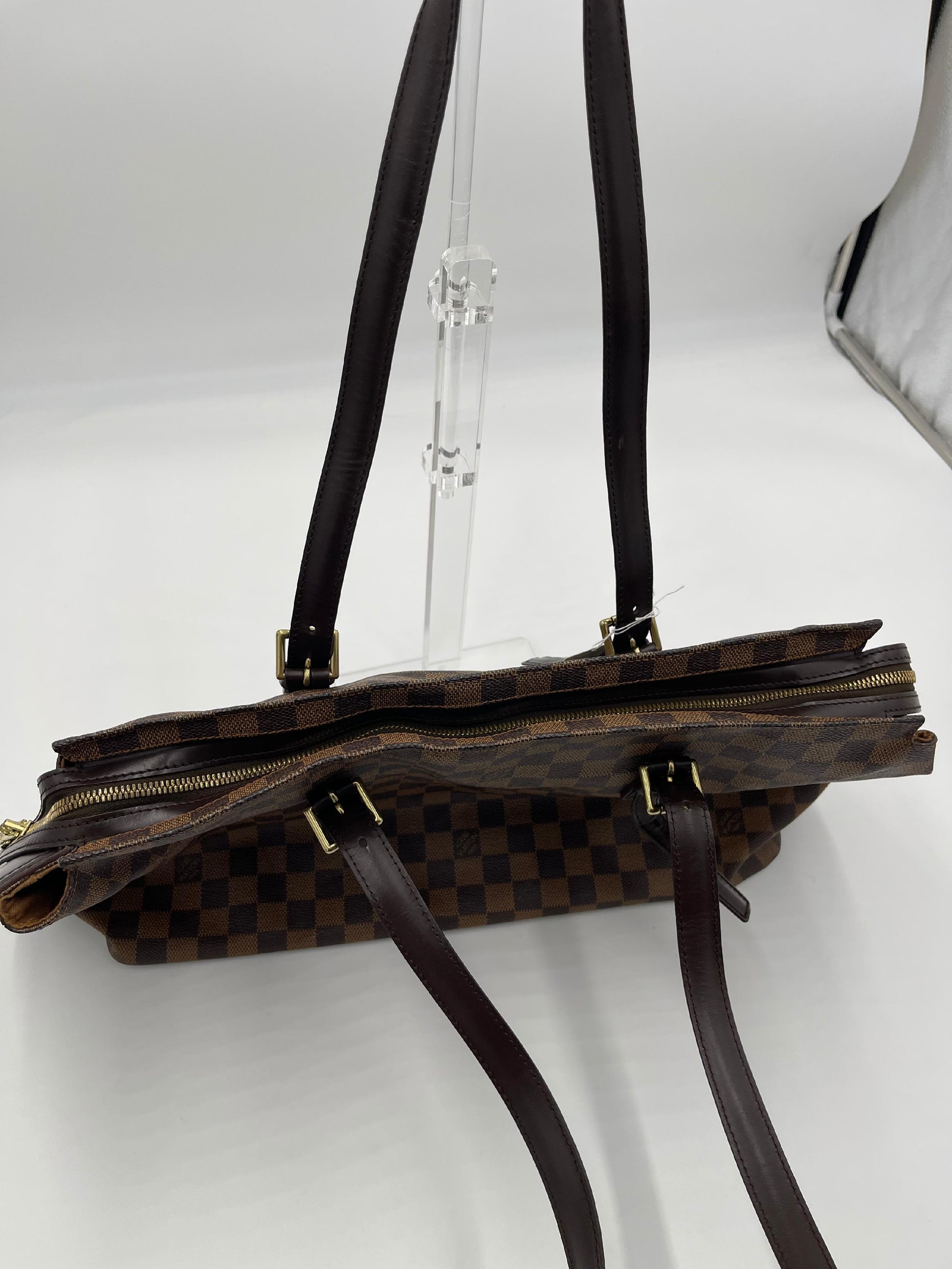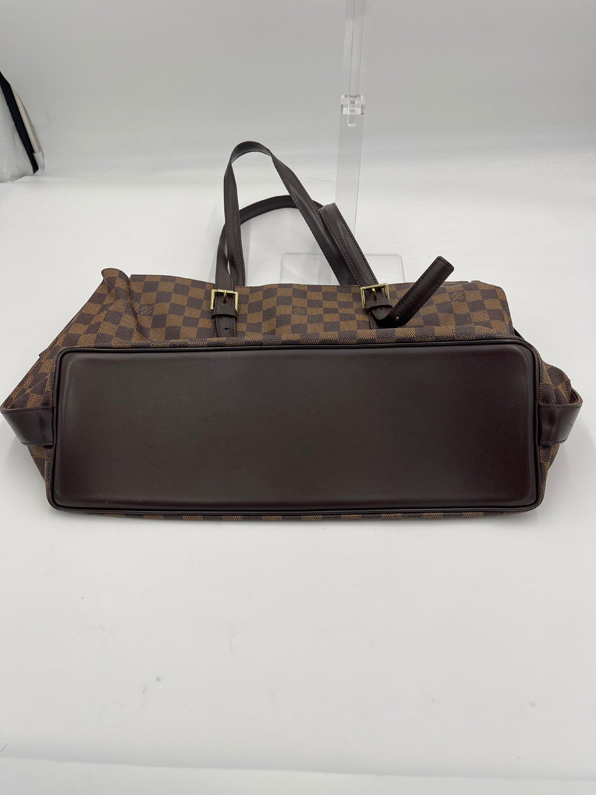 An elegant tote bag crafted from Damier Ebene canvas with smooth leather trim. The Chelsea features adjustable buckle straps, a magnetic top closure, and a spacious interior perfect for work or travel.