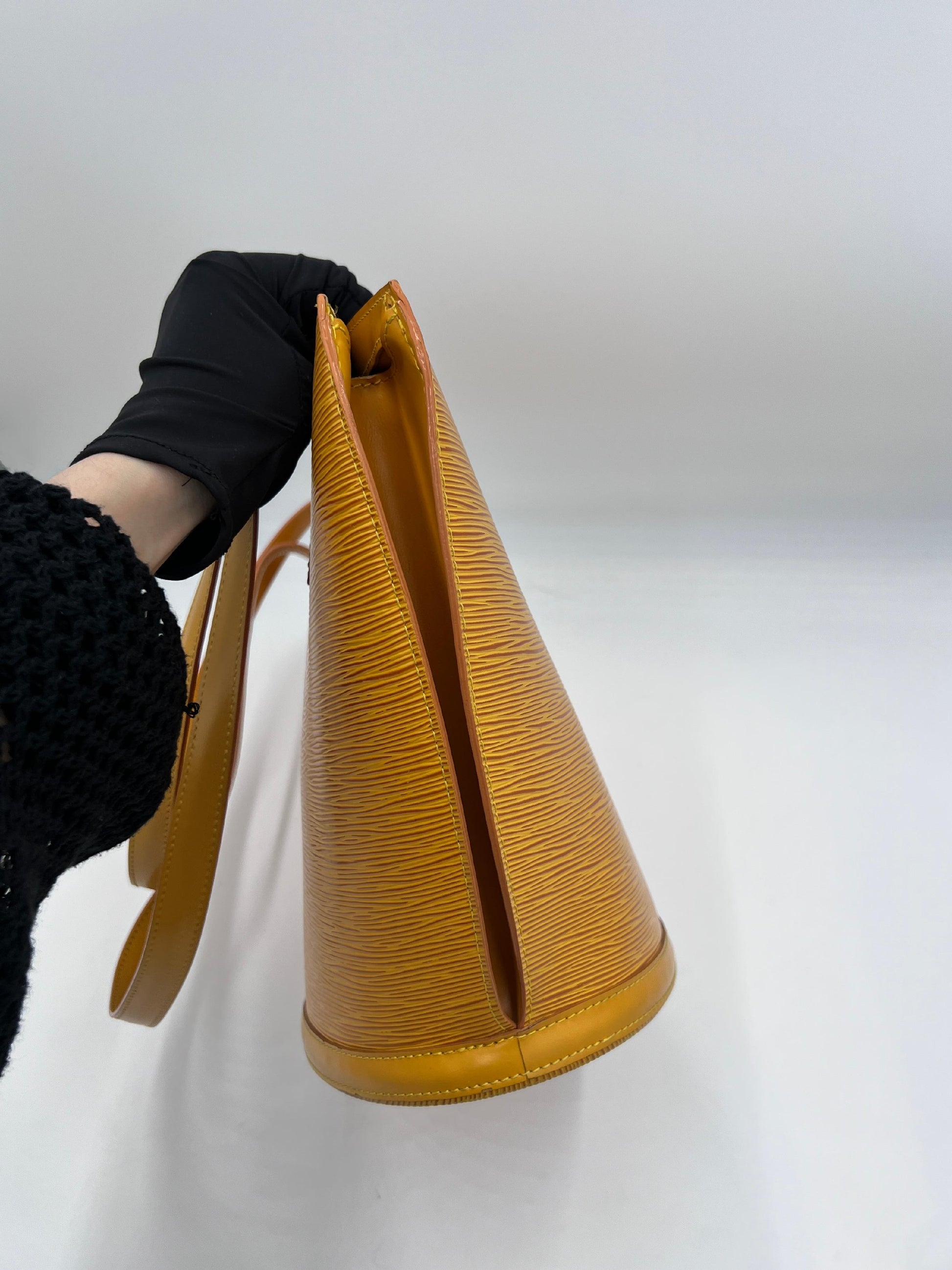 An elegant tote crafted from textured Epi leather, known for its structured silhouette and durability. The Saint Jacques features comfortable leather straps and a spacious interior, making it an ideal companion for both work and leisure.